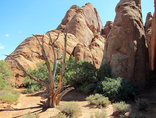 [Today's photos are mostly from around Moab, Utah, and particularly from the Arches National Park, although the photo above is of an aspen near the Flaming Gorge.]