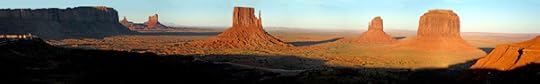Monument Valley itself is an expanse some dozen or so miles across, with immense rock formations. Two of them are called the "mittens," as each has a main part and a smaller "thumb."