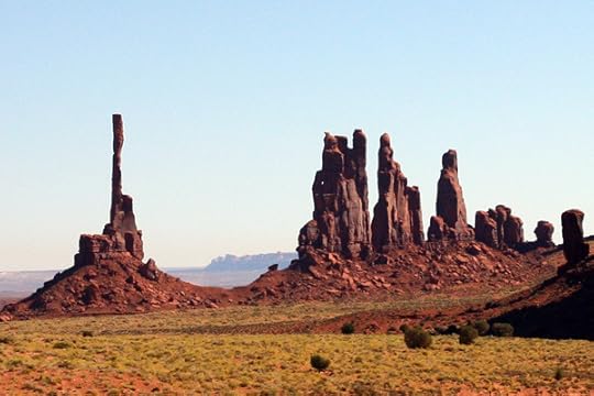 You've seen a lot of these shapes in Hollywood movies. John Ford used to come to Monument Valley for filming. The "Mittens," for instance appear in his movies She Wore a Yellow Ribbon and Fort Apache. And the Totem Pole is in the Clint Eastwood movie, The Eiger Sanction—apparently Clint got the Navahos to let him put some climbing pegs into the tower so he could climb atop it for some shoot-out scene.
