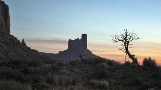 So as to have some evening entertainment, the View hotel shows one of those old John Ford movies projected on the wall of the patio every night, and we could see them from our room's window. It was kind of cool to see the landscape in these old black and white films. But after awhile, the movies got a little tiresome with their unenlightened attitudes towards the Native Americans. Those horse-soldiers whom Ford celebrates were, after all, in the business of stealing the land from the locals. And when John Wayne and Henry Fonda start prating on and on about "honor," and calling each other "Mister," it's hard to take.