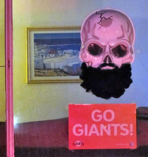 I liked this topical icon of Brian "The Beard" Wilson, the SF Giants' closer pitcher. Though we rarely watch sports, we got into viewing the whole Series. It's surprising how many really close and somewhat arbitrary calls the umps have to make, and interesting that there seems to be no movement towards using instant replays to check the calls on the field. Maybe that would slow things down too much. As it stands, there's an element of "psych" in the calls. It also surprised me how often there are tiny little-known sub-codicils of the rules that come into sway.