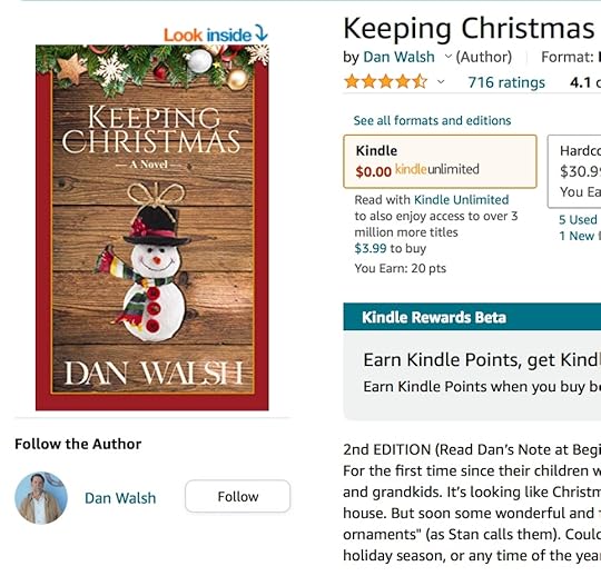 Wanted to make my Readers aware that 1 of my 5 Christmas Novels — Keeping Christmas— is FREE TODAY through this Thursday (Dec 15th). This is the 1st time this book has been offered for FREE since it’s release in 2015.
