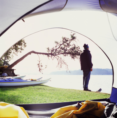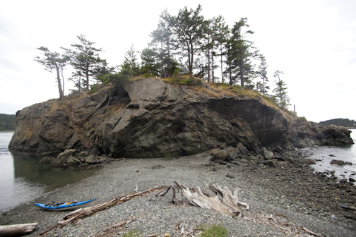 Here's an image of mine shot around 2004 at the southern campsite on Blake Island State Park. I discoverd the view on Getty Images over the weekend, orginally shot on film. We most likely paddled in from near Alki, although in later years we found it easier to paddle to Blake from our home in Ballard, approx 8 miles one way. The paddler in view is Todd Switzer. The Cascadia Marine Trail campsite is on the opposite side of the island.