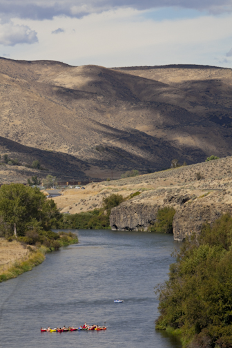 Yakima River Canyon is one of Wa State's most scenic river paddles and is great for all skill levels. A 1.5 hour drive east of Seattle and located directly south of Ellensburg on Highway 821 (Canyon Road), the river can be easily accessed from I-90. Driving south of the interstate, you begin to drop into the canyon within a few miles. Immediately you will enjoy it's steep grassy hillsides and winding two lane route which parallels the river. The river is also known as a 'Blue Ribbon' fly fishing and catch and release only river. Drift boats are common as are fishermen along it's bushy shores. Red's Fly Shop is located in the canyon and can assist with any fishing questions.