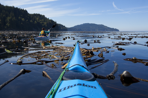 A new trip in the book, I've been paddling from Freshwater Bay (aka FWB) to the Elwha River for a few years. Located along the Strait of Juan de Fuca west of Port Angeles, this trip offers on calm days a beautiful paddle through several miles of kelp beds and undeveloped shoreline. We rated the trip Exposed, as it can also get quite rough mostly towards the Elwha end, so strong paddling experience is required to do the whole trip. The one way distance Freshwater Bay boat ramp to the Elwha River mouth is 4 miles.