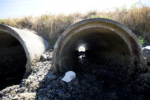 We researched the causeway last summer and found that due to years of barnacle build-up in the pipes, there is no way any paddler could make it through without sraping or bumping their heads while in a prone position. In otherwords, I wouldn't recommend trying - sketchy!