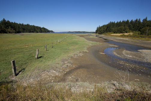 In the first two editions of this book, Trip #43 listed a causeway located under the roadway of the isthmus separating Indian and Marrowstone Islands. It was suggested that with enough water you could get a tidal push through the causeway to each side.