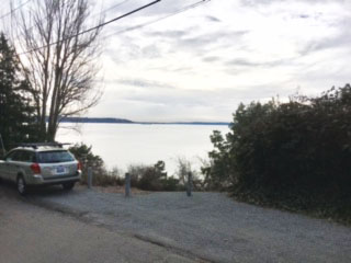 There's no public access to the water aside from the pocket park. Driving along Perkins from Discovery Park you can see West Point through the trees, then Alki and Harbor Island from the south side.