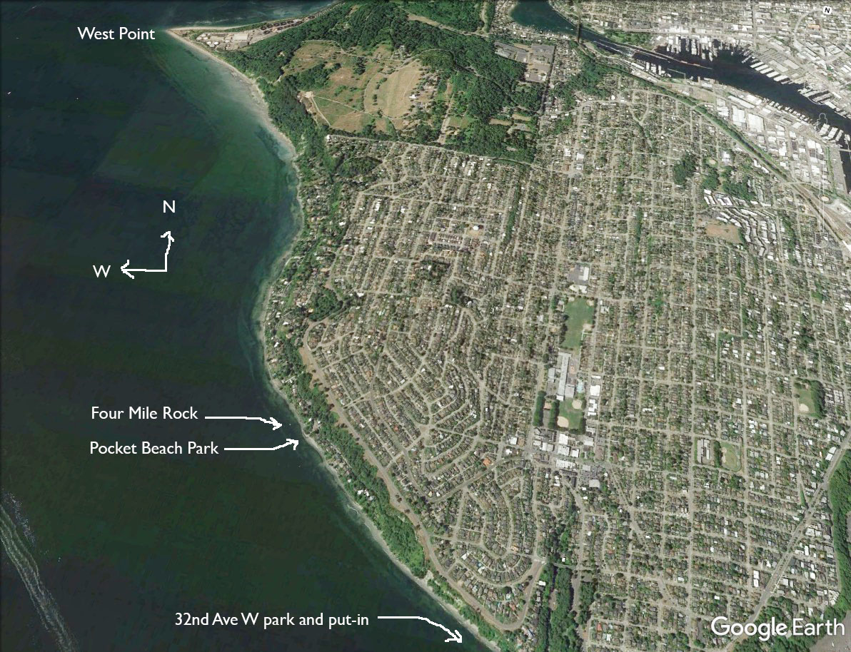 In the book..32nd Ave W to Four Mile Rock is part of Trip #15 / Ballard to West Point is trip #18