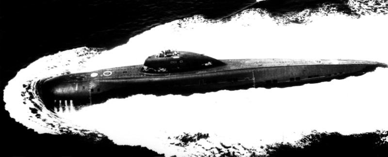 A port beam view of a Soviet submarine, 1977 NARA/6363107