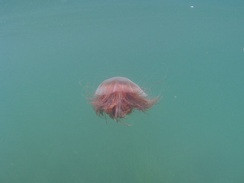 In summer on Pacific NW saltwater waterways, you'll begin to see jellyfish appearing in large numbers. The two most common jellyfish are Moon Jellies, and the largest of the two is the Lion's Mane, (cyanea capillata).