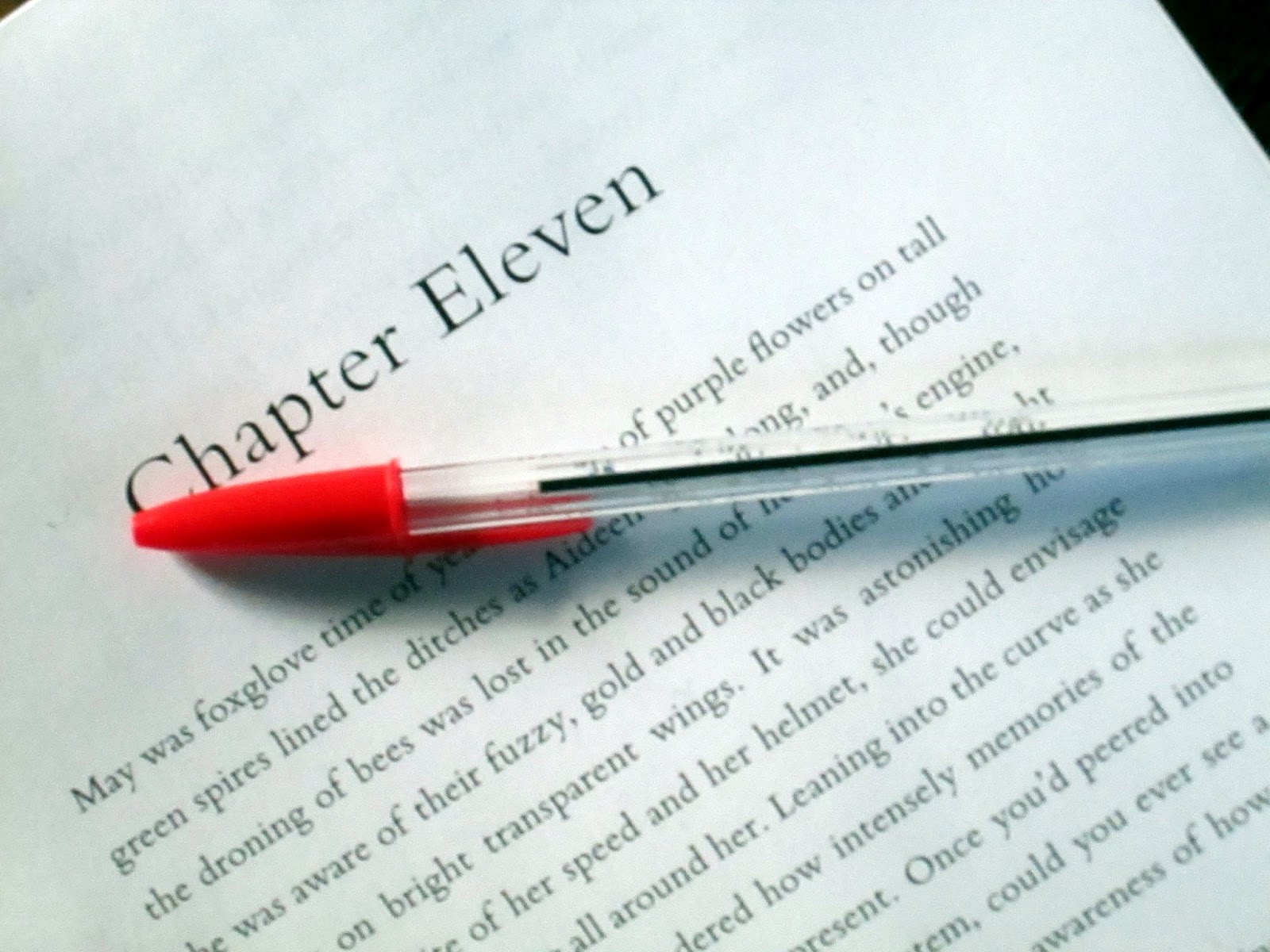 Then finally, after the copy edit, there's the proof stage, when you're back to colour - this time a red pen.