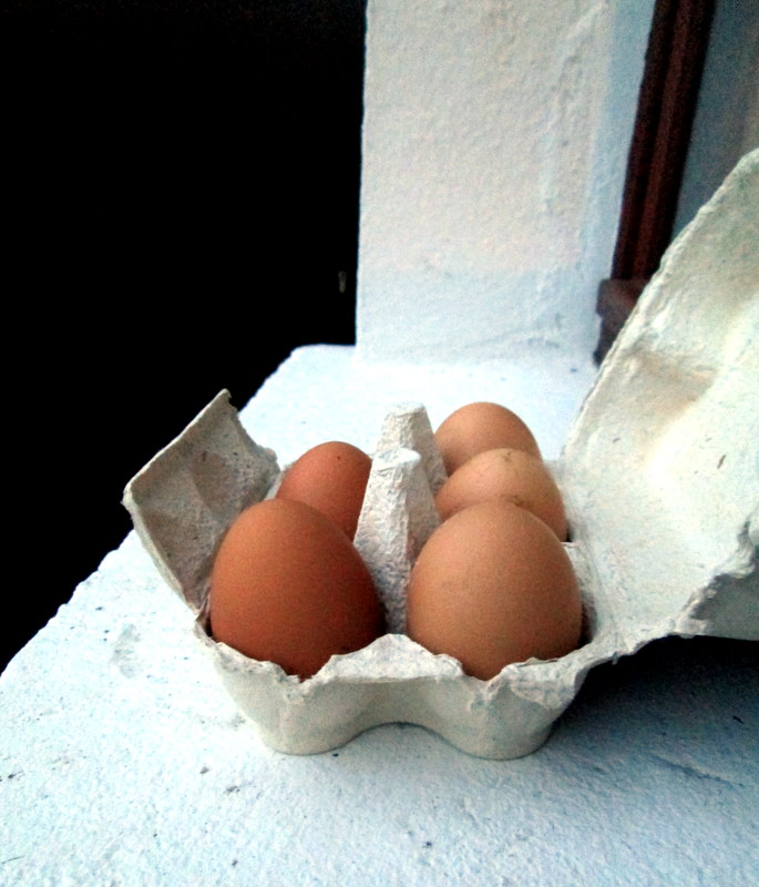 No note, and no indication of who had left them. Just eggs left by a neighbour, which often happens round here. Proper new-laid eggs, grubby and unequal in size, from which a tiny, downy feather may flutter when you open the box.