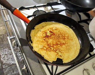 Pancakes aren't traditionally eaten in Corca Dhuibhne on Shrove Tuesday. Instead, people cooked a big meal of whatever they had in the house the night before Lent started, in preparation for the six weeks of fasting and abstinence before Easter. But tonight, the pancakes added to the scent of our daffodils, filling the house with the aromas of nutmeg, lemons and frying apples.