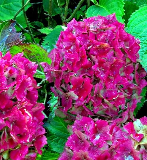 Scented flowers give way to huge, dusky hydrangea heads waiting to be picked and dried.