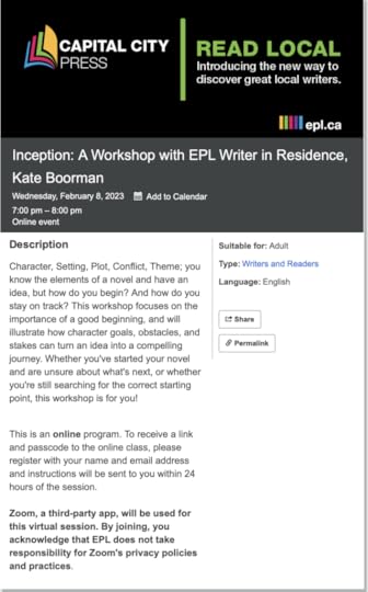 📣Workshop Alert: Writing Workshop with EPL WiR Kate Boorman