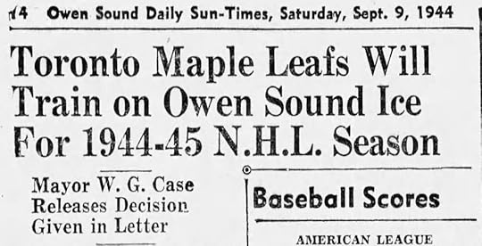 Talk of Toronto holding training camp in Owen Sound in 1944 had been rumoured around town since that spring, when Day and Leafs assistant general manager Frank Selke were the headline speakers at the local arena for a banquet held by the Owen Sound Hockey League on May 31, 1944. Mayor W. Garfield Case presided over the banquet, and after it was announced at a committee meeting of the City Council on September 8 that the Maple Leafs were coming to town, the Sun-Times newspaper reported the following day that Case “has been conducting negotiations with Maple Leafs management for some time regarding the team coming here to practice.”