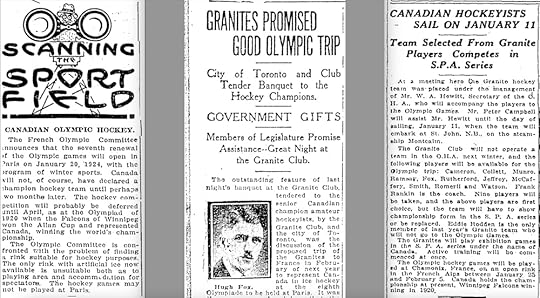 The Globe, January 12, 1924.Rumours in April that Paris might not get the 1924 Games after all, or that winter sports might be excluded if they did, soon proved false, and on May 27, 1923, the Granites formerly withdrew from the senior section of the Ontario Hockey Association for the winter of 1923-24. This cleared the way for the Granites to represent the country in France as the Canadian Olympic hockey team in January and February of 1924.