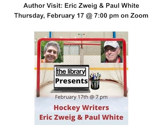 But, if you’re looking for a little hockey & writing talk right now (or at least, on Thursday!), please join by Zoom at 7 pm on February 17 for conversation and Q & A with me and Paul White courtesy of the Owen Sound library.