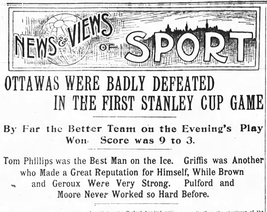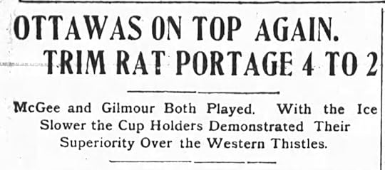 Headlines in the Manitoba Free Press after Game Two.However, it is possible that the ice was flooded a little too close to game time to allow it to freeze into a hard, fast surface. That’s what Griffis believed, although he didn’t think the Ottawa club had anything to do with it.