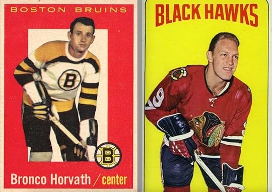 The Uke Line had a strong season in 1957-58, slumped a bit in 1958-59, and enjoyed their best year together in 1959-60. In fact, Bronco Horvath found himself in a tight race for the NHL scoring title with Bobby Hull that year. It went right down to the final game of the season, which pit Hull’s Chicago Black Hawks (two words in those days) against Horvath’s Bruins.