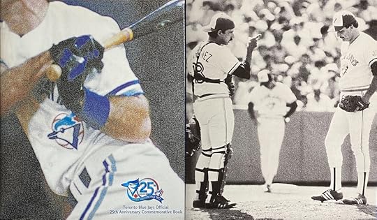 Though Dan Diamond and Associates was mostly a hockey publisher, working on the Blue Jays 25th anniversary book was definitely my favourite project! This picture of Buck Martinez calling out Bill Caudill is one I particularly like.Buck had two great moments during the first pennant-winning season of 1985. The first came on June 6 against the Detroit Tigers. Ernie Whitt actually caught most of that game, as Jimmy Key took a perfect game into the sixth inning, and a no-hitter into the ninth. Key wound up going 10 shutouts innings of two-hit ball. Buck came on in the 11th inning after Manny Lee ran for Whitt. He caught Gary Lavelle in the top of the 11th and Jim Acker in the 12th. In the bottom of the 12th, Buck got his first at-bat of the game with one out and George Bell on first base. He was hitting just .134 at the time, and fell behind 1-and-2 in the count before taking Aurelio Lopez (Señor Smoke) deep for a two-run homer that won the game 2-0. It was a huge, confidence-boosting victory over the 1984 World Series champs!