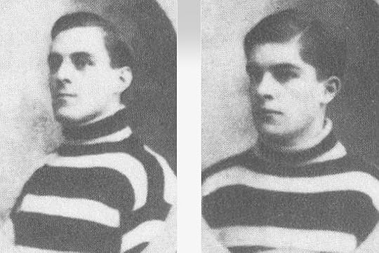 Bert Sims in on the left in a McGill uniform. Percy is with Ottawa on the right.(Courtesy of the Society for International Hockey Research.)