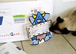 I took Critter to a yoga class in Oldwick, N.J. Because, frankly, he seemed a bit stiff. Yes, he's made of foam and cardboard, but never mind that. Nonetheless, here is Critter on my yoga mat just before a downward dog...