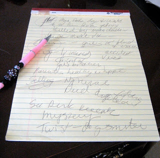 The other night, smack in the middle of it, I awoke with the perfect story in my head. A full-fledged plot from the explosive beginning to the twist, to the satisfying ending. And what characters--fully developed and fascinating in every way. Yes, this story was a gift. Finally! I mean, I've heard of writers dreaming their novels, but this has never happened to me. So, when this new story smacked me between the eyes (think Tooth Fairy with attitude), I grabbed a pen and as quick as a half...