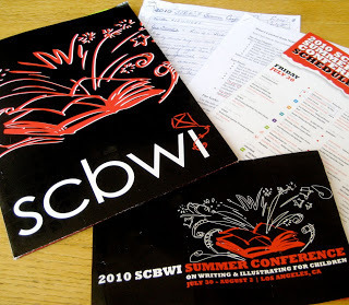 In just three short days I'll be settled (hopefully) on a plane, jetting across the country to Los Angeles, California. Yup, it's time for the annual Society of Children's Book Writers and Illustrators Conference. If you've never been, and you are a writer and, or, illustrator of books for children, this is a conference to keep in mind. It's a blast. Seriously. Great speakers, workshops, a Saturday night party by the pool, and the Golden Kite Award lunch, to name a few of the scheduled...