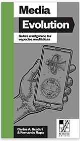 So I was truly pleased to get a copy of Carlos Scolari and Fernando Rapa's Media Evolution (Scolari's words, Rapa's graphic designs), which will fit right up there on my bookshelves next to Medium is the Massage and War and Peace in the Global Village. Most of the words are in Spanish, which I can barely read, but the images are pretty much all you need to get what the book is talking about it, and they're images Quentin Fiore, and Marshall McLuhan, would surely have appreciated. The references in the book are also in the McLuhanesque tradition -- deep and far reaching -- and range from close McLuhan associates such as Bob Logan to science fiction pathbreakers like Bruce Sterling. Hey, Scolari even managed to get a photocopy of a relevant page from my 1979 doctoral dissertation (Human Replay: A Theory of the Evolution of Media) into his book.