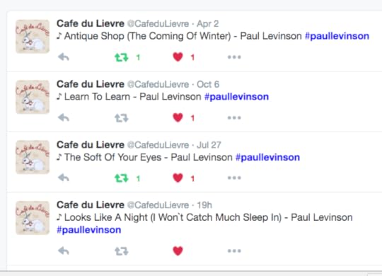Well, the cafe has been playing my songs - hey, baby, they're playing our song - from my Twice Upon a Rhyme album, and, come to think of it, from my Spun Dreams album, too, for more than a year. So far, as far as can tell, patrons haven't been running out of the cafe in horror, so I take that as a good sign.