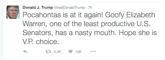 Although I disagree with most of it - I, too, would be very happy if Warren were Clinton's VP choice - I don't fault Trump's right to say most of it. He's entitled to say Warren has not been productive as a US Senator (though I think she's done a great job), and even that she has a "nasty mouth" (which does have an anti-woman tinge to it, but no one could deny that Warren was nasty about Trump last night - justifiably nasty, to be sure - but nasty no doubt).