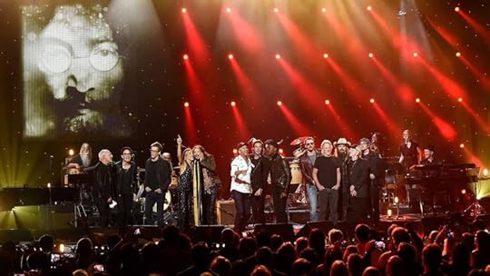 Steven Tyler and Eric Church brought the crowd to their feet with their rendition of "Revolution," but that was true of just about every performance, and the incandescent words they conveyed. I'd forgotten how brilliant the lyric of "Mind Games" is - with its talk of "mind guerrilla" and "druid dudes" - until Eric Church sang it and lifted the veil. But that was also the case with Aloe Blacc's "Watching the Wheels" - first time I've heard him, he has a fantastic voice, by the way - and even Sheryl Crow's "Hard Day's Night" had a real plain-spoken elegance, harkening in a way to Woody Guthrie.
