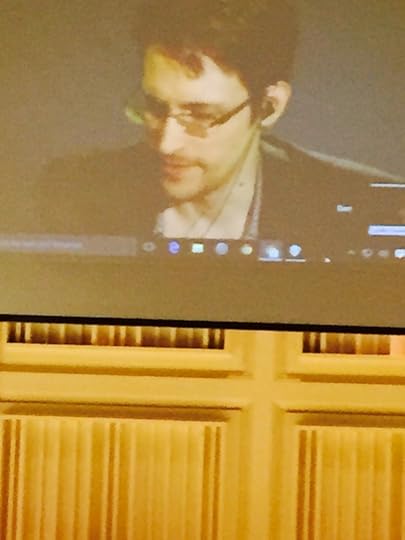 But what most struck me about Snowden, and made this event so memorable, was his philosophic depth. In a phrase, he thinks that human values, decided upon by individuals, can be more compelling of our loyalty than any laws. Yeah, I know this can push us down the slippery slope of anarchy as everyone does what they want to do regardless of the law. And I know that such a principle can easily be used against a progressive law that we support, such an anti-discrimination ruling or statute. But the general principle still holds. The government, which already holds so many cards, including a monopoly of power (as Snowden also aptly noted), cannot always be the ultimate authority in our lives.