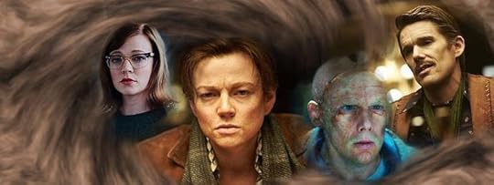 My favorite touches in time travel stories are those that are almost casually dropped, having no seeming earthshaking significance at the time, but turn out to be major pointers to what is really going on in retrospect. Shortly after we meet the character played by Ethan Hawke, whose face is badly burned, we come to see that he looks like Ethan Hawke because of the plastic surgery to repair his face. Not long after the hermaphroditic character played first by Sarah Snook claims her->his manhood, he gets the good news that he's no longer "shooting banks". This sets up the biggest payoff in the story, in which he (still played by Snook) sleeps with her (younger) self, she gets pregnant with a baby that is her (yes, both her and hers, and, for that matter, also his, making the baby a kind of clone), and eventually she out turns to be the he who becomes Ethan Hawke. If all of this sounds a little awkward and a lot complicated, it is, but the magic of both the story and the movie makes it mostly mind bogglingly wondrous.