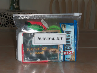 I got my survival kit a couple of weeks ago, but I've been too distracted to tell you about it. Here's what it looks like.