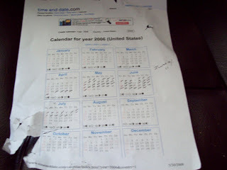I thought it would be a good idea before beginning the revisions on This World We Live In to print a calendar and cross off the dates that I use in the book. The editor wants me to add some stuff, so by finding which dates were available, I could squeeze the new entries there.The calendar looked much better before Scooter got his teeth in it. The book, however, will be much better now the editor has gotten her teeth in it.