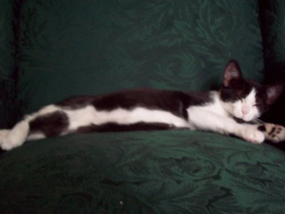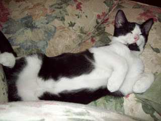 Scooter is fine. He weighs 4 pounds 2 ounces. My vet thinks he's a week or so younger than I keep saying he is. He'll go in for what my vet so tactfully referred to as his "big boy surgery" at the end of July. I would have gladly performed little boy surgery on Scooter myself this morning, when he