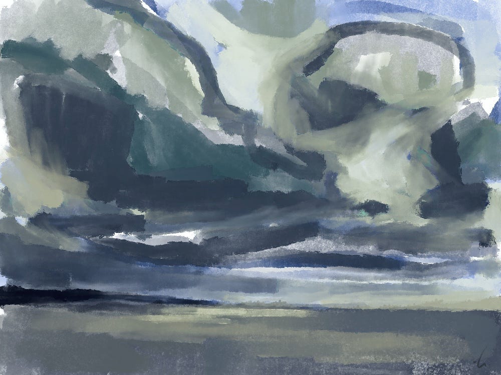 Van jongs af aan ben ik gefascineerd door de aanblik die de lucht boven mijn hoofd biedt, de wolken die erin drijven, de kleuren die worden verspreid, de oneindige ruimte. En elke tekening die ik ervan maak is een poging om deze fascinatie te begrijpen, beter te begrijpen.