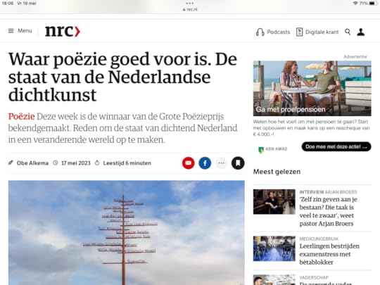 Stelde me naar aanleiding van een essay van Marc Kregting, waarin o.a. een ‘politieke, activistische poëzietendens’ wordt gesignaleerd, de vraag of het cultuurmarxisme in de Nederlandse poëzie opleefde, en dacht, concluderend, in zekere zin wel.