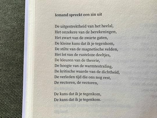 Opvallend: vier van de zes genomineerde bundels voor de Herman de Coninckprijs 2023 zijn debuutbundels. Ik heb het gevoel dat debuutbundels steeds vaker worden voorgedragen voor een prijs. Omdat hij dichters hun rijpingsproces gunde, besprak Hans Groenewegen zelden debuutbundels. Wat me bovenal fair play lijkt. Is er wellicht sprake van een commercieel dingetje of een hunkering naar verandering? Een separate overdenking waard.