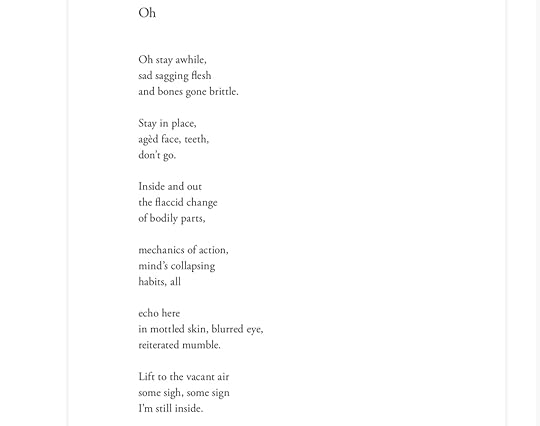 Robert Creeley zette een ander middel in: hij schreef als uitlaatklep gedichten over het aftakelingsproces. Onderstaand vers werd in 1990 opgenomen in de bundel Windows, toen hij 64 was: