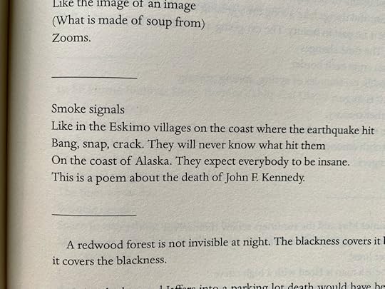 Op 22 november 1963 werd president John F. Kennedy in Dallas, Texas, door Lee Harvey Oswald doodgeschoten. Oswald haalde driemaal de trekker over – ’bang, snap, crack’. Deze moord greep mensen over de hele wereld aan, sommigen werden gek van verdriet. De Amerikaanse dichter Jack Spicer (1925-1965) schreef er een kort titelloos gedicht over, dat eerst in Language (1965) en later in My Vocabulary Did This to Me: The Collected Poetry of Jack Spicer (2008) werd opgenomen: