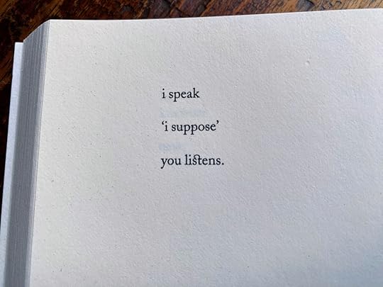 ik zeg: ‘ik veronderstel’ en ga ervan uit dat je luistertik zeg: ‘ik veronderstel’ opdat je luistertals ik spreek veronderstel ik dat je luistertals ik spreek veronderstel ik, hoor jeik spreek veronderstel ik, jij luistertik spreek, ik veronderstel, jij luistertAls de ik-figuur een draaier is, heeft hij in dit geval de beschikking over een handvol uitvluchten. Deze tekst kan op verschillende manieren worden uitgelegd. Naar de context, het verband waarin de interactie tussen de ik en de jij zich voordoet, moet de lezer gissen. Waar het gedicht nu precies over gaat blijft dan ook ongewis. En daar gaat dit gedicht nu precies over. Het test zijn eigen betekenis.