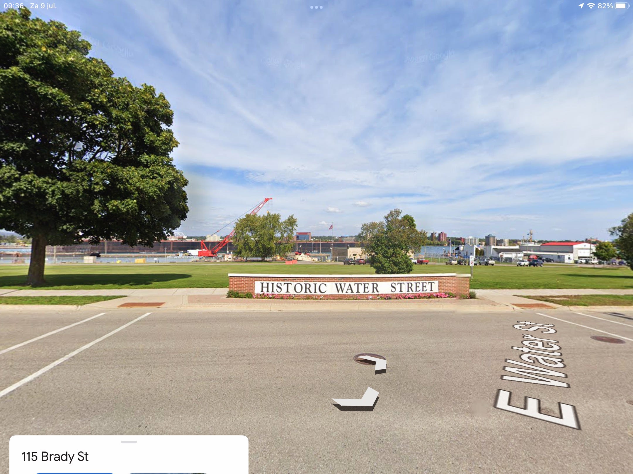 Brady Park ligt nog altijd aan de St. Marys River, op de Amerikaanse oever. Ik opende Google Street View en maakte een screenshot van de plek die Niedecker meer dan zestig jaar geleden bezocht. In de verte een lange, lange ijzerertsboot.