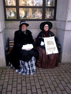 The woman's sign says "Where there's drink, there's always danger!" (Of course, I think to keep warm in Victorian England a lot of people drank a lot of liquor, but at least there were a few teetotalers like these women around to post warnings!)