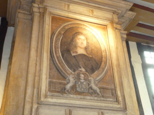 This portrait is fitted above the fireplace in Corneille’s study. The sun strikes it from windows to the right.
