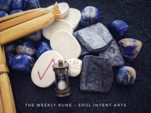 Sowilo (polymer clay rosemary tile) is the half-month rune through 27 February. Berkana (amethyst) is the intuitive rune, and Mannaz (porcelain tile) indicates Wisdom’s message to us. The spirits of place anchoring the runes this week are fossilized Gastropod (sea snail) and element Air in Autumn, in the direction of Front. Read right to left is Sowilo, Berkana, then Mannaz. The full runecast will...