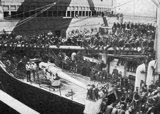 Leviathan, a confiscated German ship was converted into a troop carrier during World War I. The largest passenger ship in the world at the time, it was used to transport thousands of troops, many of whom fell sick during the Spanish Flu pandemic.